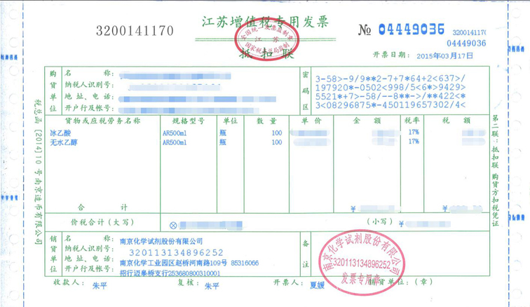 1.南京化學試劑股份有限公司發(fā)票一般以三種形式進行投遞:郵局掛號信,快遞及隨貨同行。
